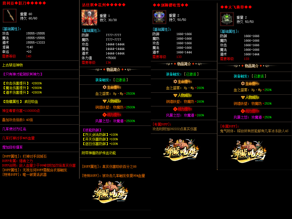 - 【游戏介绍】:|《新海贼吃鸡》礼包全部重新改!降低装备元素属性,优化PK,取消所有破复活BUFF,还原最初的pk,优化pk属性